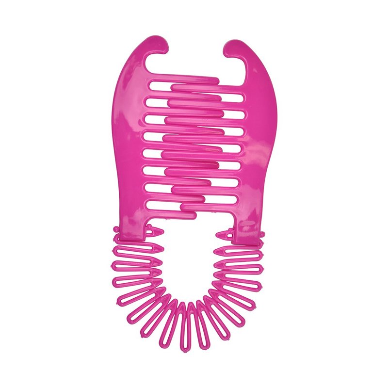 Flexible Interlocking Banana Clip Clincher Interlocking Two Sides Hair Comb - Hot Pink