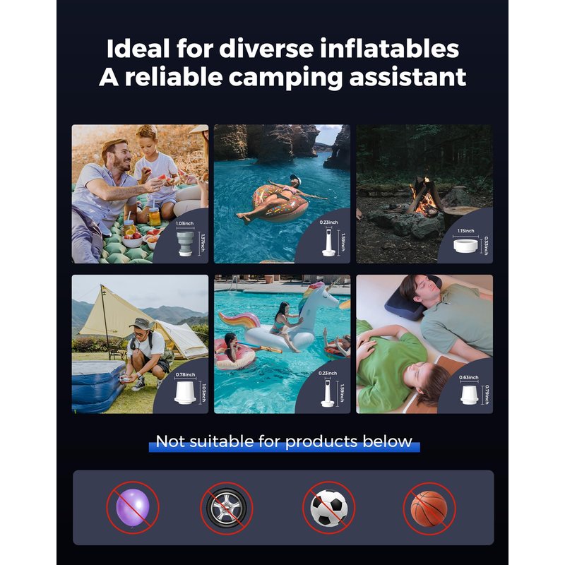 - ➤【Comprehensive & Caring】- From air mattresses to inflatable pillows and kids' pool toys, our pump is equipped with 5 different nozzles to meet your diverse outdoor needs. For the pump's longevity, please limit usage to 10 consecutive minutes. Should you have any questions or concerns, we're always here to help!