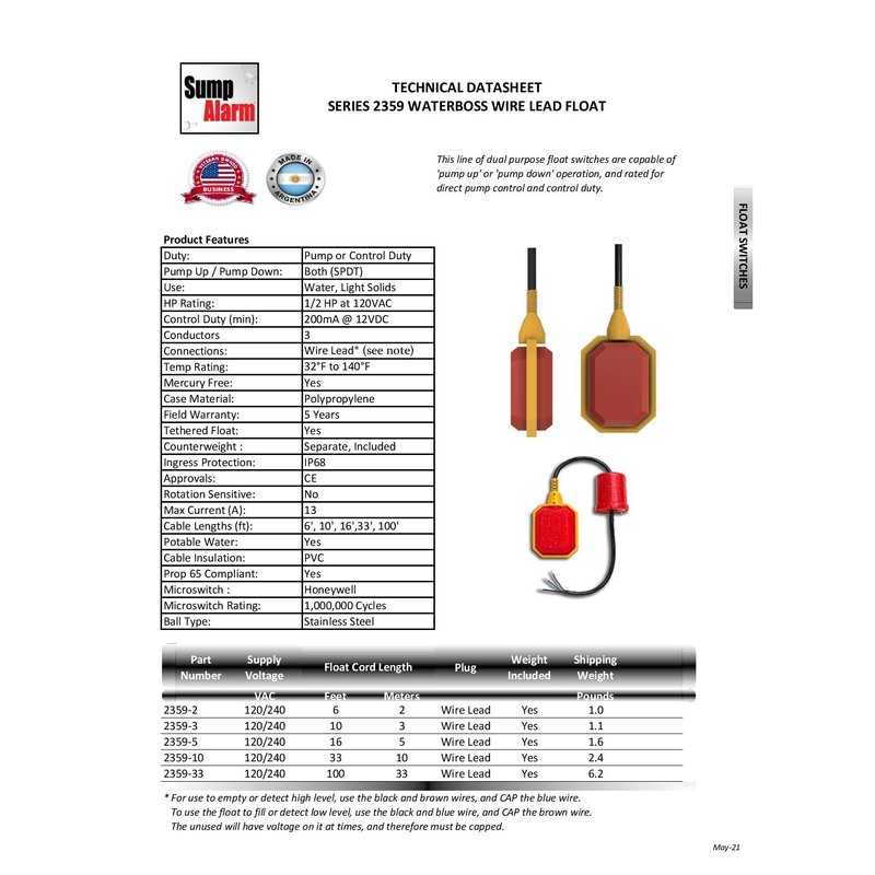 - 5-YEAR WARRANTY against manufacturer defects lets you select the Water Boss Sump Pump Float Switch Replacement with confidence. This reliable float switch yields big savings in flood repair costs.