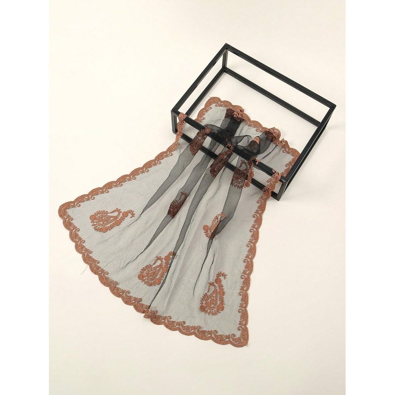 Floerns Women's Flower Embroidery Hair Scarf Headband Sheer Hair Bandana Black One-Size