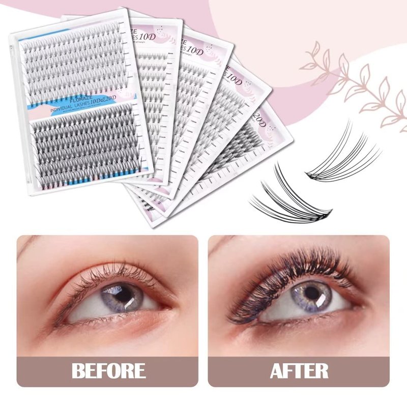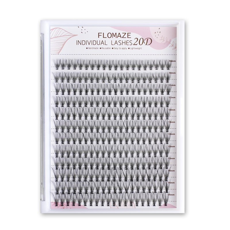 FLOMAZE 20D Lash Clusters, Individual Lashes 240pcs Faux Mink Lash Clusters Natural Handmade Cluster Eyelash Extensions C Curl 0.07mm Thickness False Lashes (10/11/12/13/14mm)