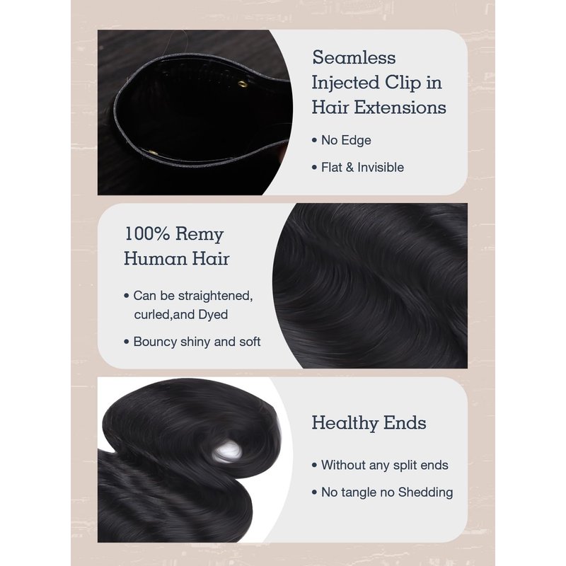 Upgrade Design: Our real body wave hair extensions clip in human hair is designed with machine injected seamless PU, invisible and lightweight without being heavy.