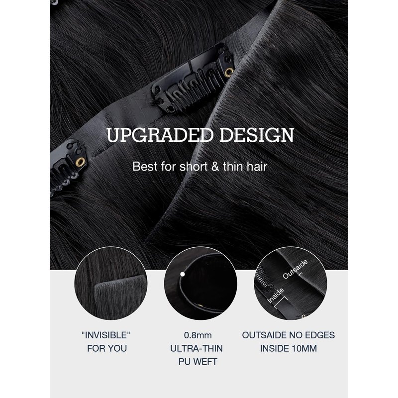 - Ultra-thin Seamless Clip ins & Invisi Edge: Our hair extensions use invisi-edge injected seamless PU design, compared to ordinary PU hair extensions clip ins have a better invisible effect, comfortable to use, firm and not easy to fall off, confidently dumping the head without burden.