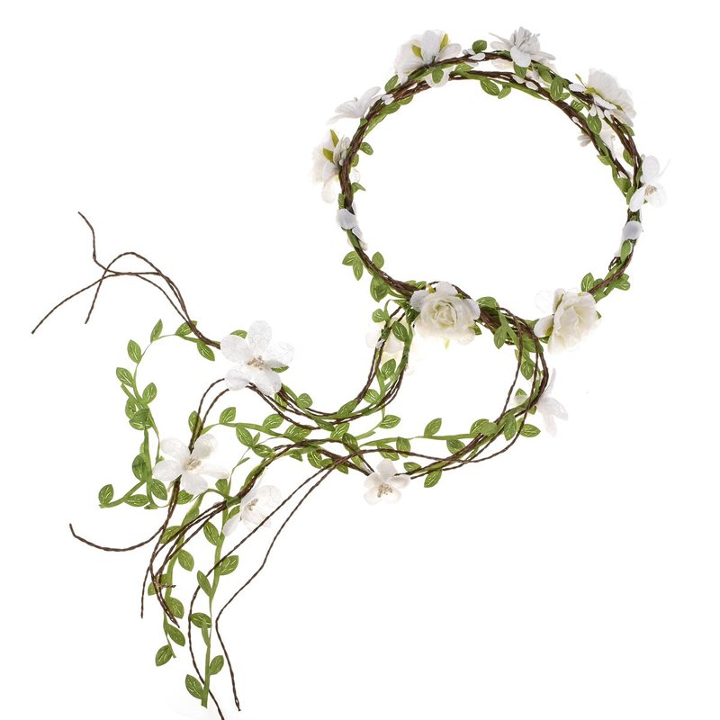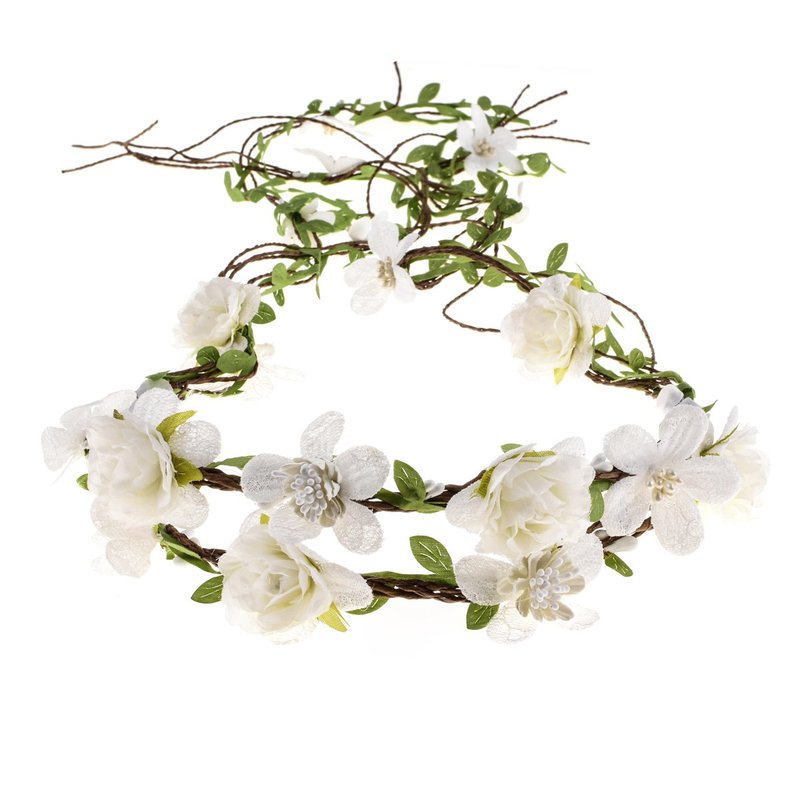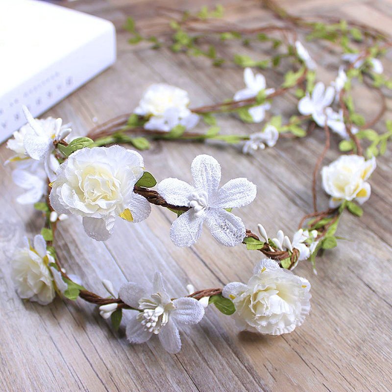 Floral Fall Adjustable Bridal Flower Garland Headband Flower Crown Hair Wreath Halo F-83 (Style 2 White)