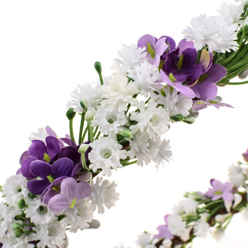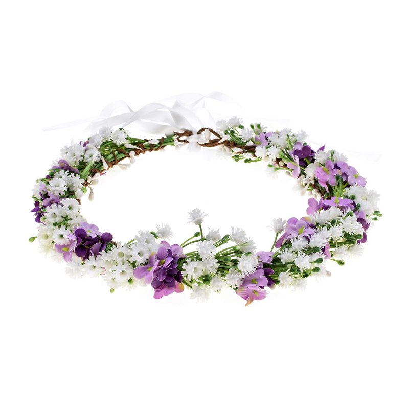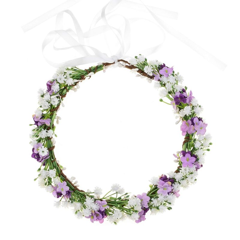 Floral Fall Artificial Baby Breath Flower Halo Wedding Crown Pink Bridal Headpiece Greenery Crown HC-24 (White purple flower)