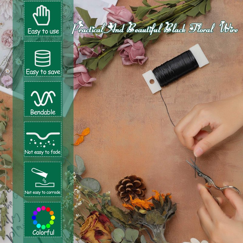 Floral Wire 38 Yards 114 Ft Florist Paddle Wire 22 Gauge Flexible Paddle Wire for DIY Crafting Wreath, Floral Arrangement, Bouquet Stem Wrapping, Christmas Wreaths Tree, Wedding Bouquets (Black)