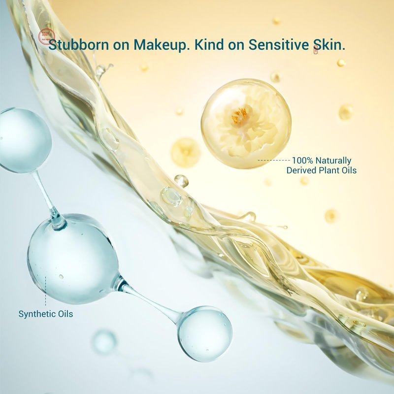 - Stubborn on Makeup. Kind on Sensitive Skin. : Jojoba oil, plant-derived squalane, and olive oil effortlessly moisturize while removing stubborn waterproof makeup without any oily residue. A gentle formula for sensitive skin, this oil is 100% vegan and contains no petrochemicals, parabens, fragrances, or alcohol.