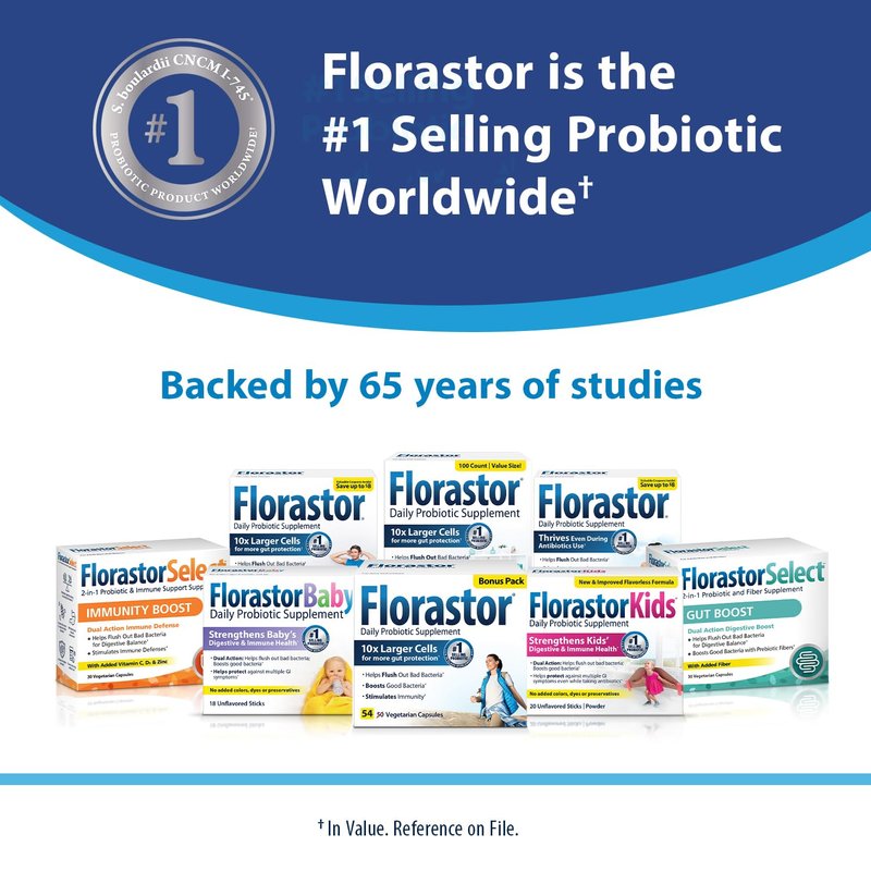 - The probiotics of choice: The number 1 selling probiotic in its class worldwide; Florastor formulas are made with ingredients that are vegetarian, gluten-free, titanium dioxide-free and appropriate for lactose intolerance