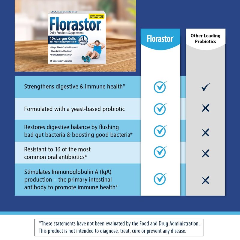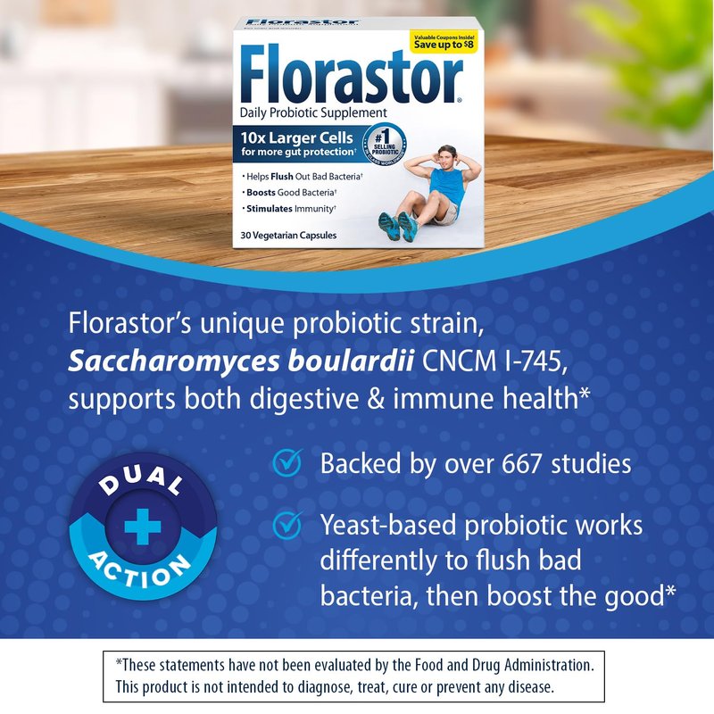 - Dual action support: Florastor probiotic helps strengthen digestive support; probiotics for women and men help flush bad bacteria and allow good bacteria to flourish; helps provide immune support and improve digestion by breaking down carbs and sugars*