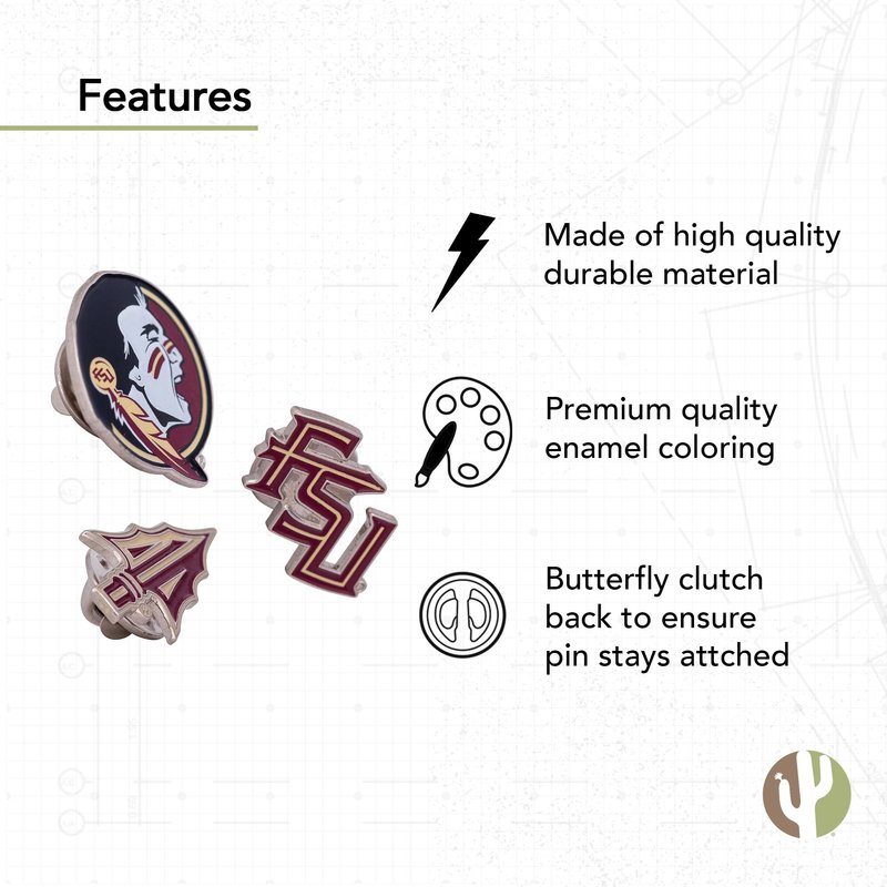 Florida State University Lapel Pins 3 Pack Seminoles FSU Logo Enamel Made of Metal (Pin Set)