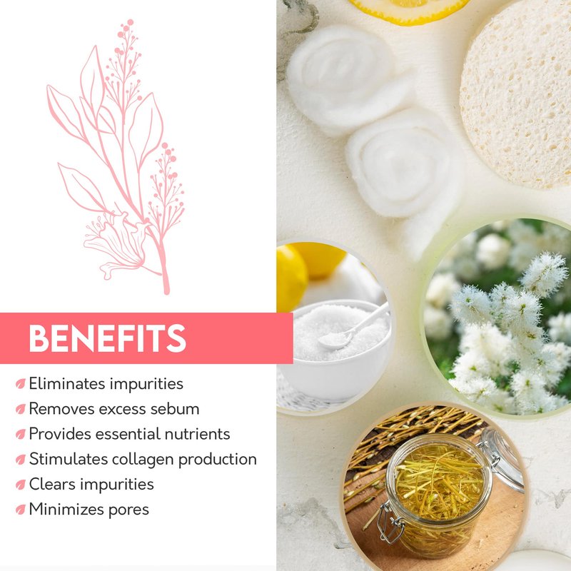 - BENEFITS: Our vitamin c enriched facial cleanser provides the skin with essential nutrients to cleanse, stimulates collagen production, clears impurities, and minimizes pores.