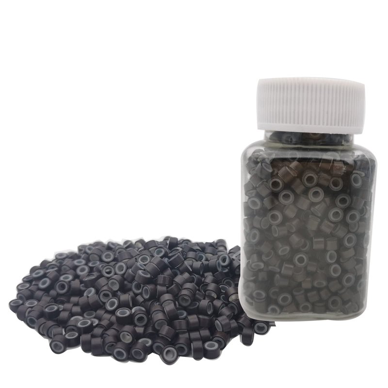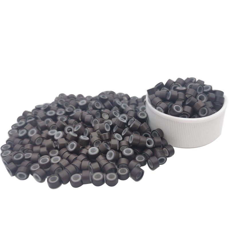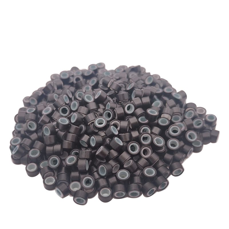 Flosius 1000 Pcs Hair Extension Beads 5mm Silicone Micro Rings Links Beads for I Tip Human Hair Extensions Tool (Dark Brown, 1000 Pcs)