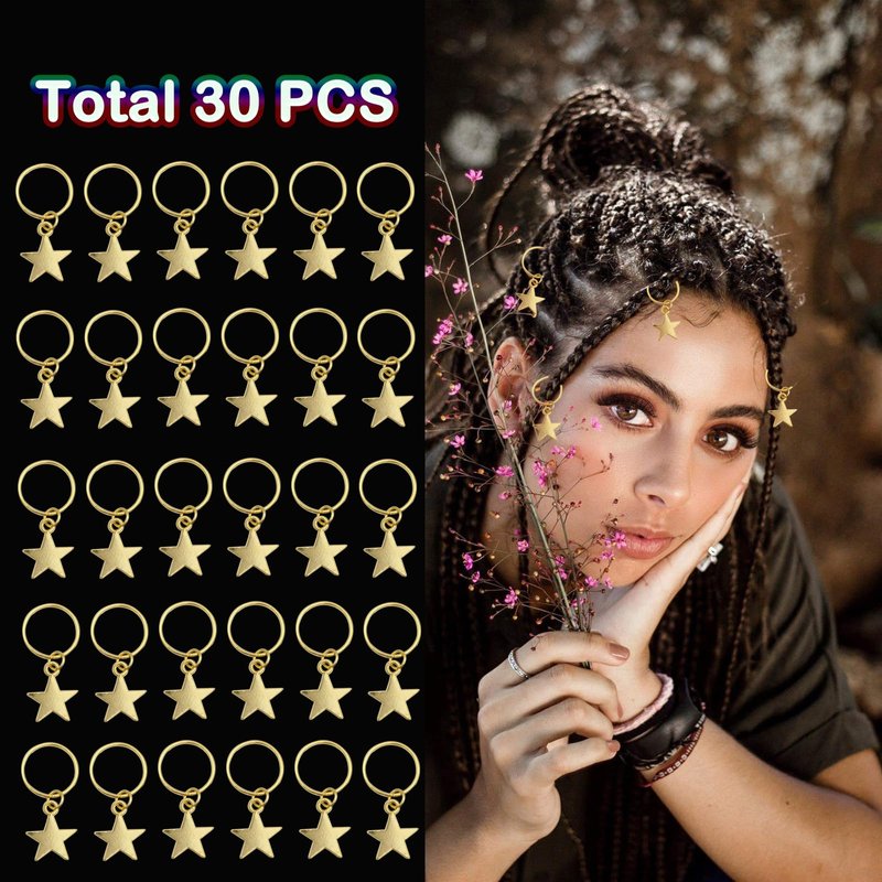 🌜30PCS Hair Charms Hair Braid Rings Gold Adjustable Cuffs Hair Jewelry for Women Braids 🌛