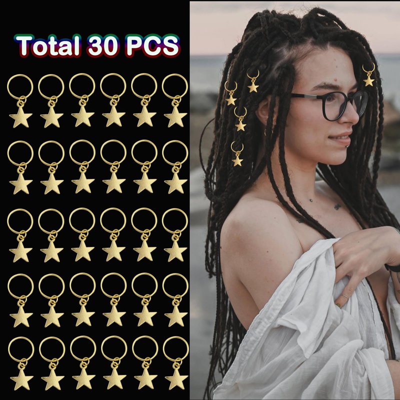 💎Style:Gold Five-pointed Stars loc jewelry for hair , a beautiful and attractive way to decorate your hair.