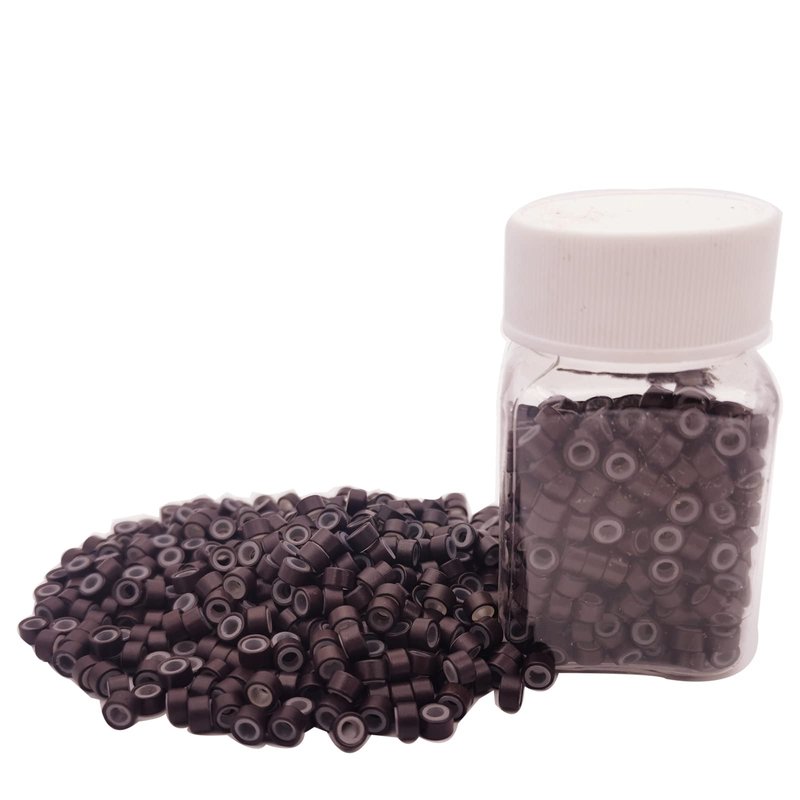 Flosius 500 Pcs Hair Extension Beads 5mm Silicone Micro Rings Links Beads for I Tip Human Hair Extensions Tool (Brown)