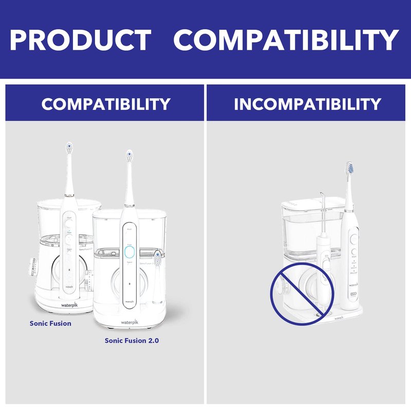Flossing Toothbrush Head Replacement, 3 Count, Compatible with Water-pik Sonic Fusion / 2.0 SF-01, SF-02, SF03 & SF-04 Tooth-Brush and Water Flosser Combo Brush Heads (Full Size, White)