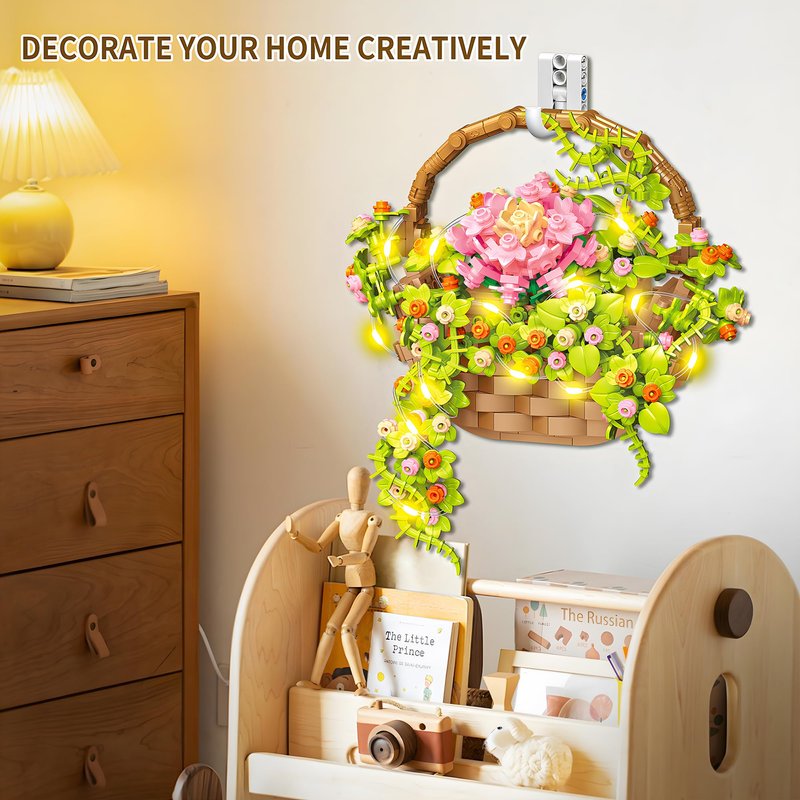 - 【Mini flower basket with LED light】:The bonsai flower basket is made up of 691pcs building bricks, When it complete, turn on the LED light, the vibrant light will add the finishing touch to your flower house and make it look even more warm and cozy at night