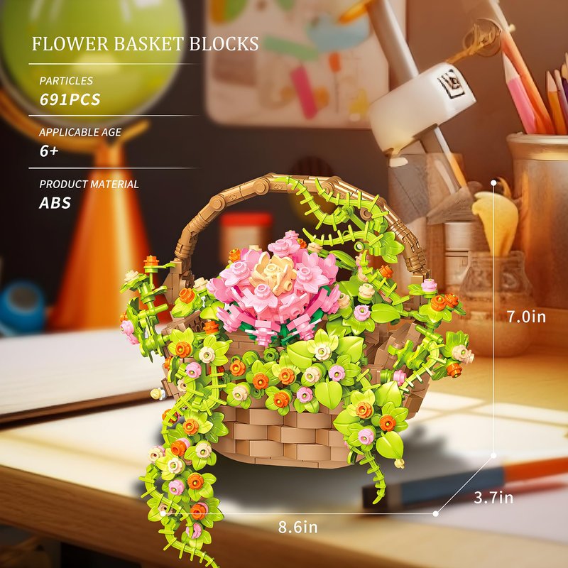 - 【Flower basket and floral inspiration design】:Flower bouquet building set is composed of plants and flowers, inspired by the real flowers and plants placed in the basket. These lifelike details enhance the realism of the flower basket and inspire endless possibilities for players