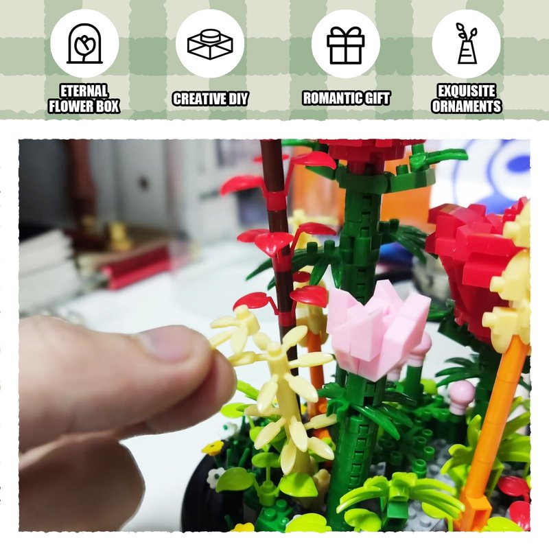- Dust bag protection block quality: Comes with a dust cover dome, and the base surface is stable and smooth. The meticulously designed dust bag takes care of each building block, ensuring that it remains fresh and delicate. Meanwhile, the stems, petals, and leaves can be adjusted in shape to create a diverse and beautiful arrangement