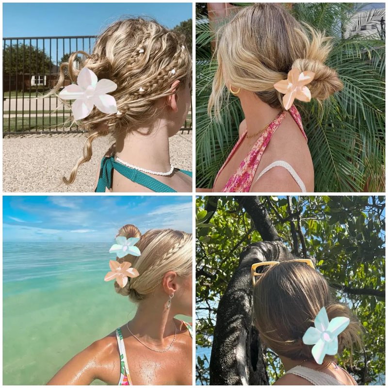 Applicable Occasions These dainty large flower claw hair clips are beautiful hair claw clips designed for daily wear. Our cute plumeria hair claw clips are the perfect complement to your daily hair accessories. Whether it's work, study, makeup, washing, cooking, yoga, dance, wedding, beach, Christmas party, daily date, or anywhere else, these cute big claw hair clips will add charm and temperament to your look. Package Includes A Package include 6 flower hair claw clips with different colors. Perfect summer beach hair accessories for women and girls. The sweet bow hair claw clips for women are soft and comfortable, suitable for young and energetic girls and women with various daily dresses.