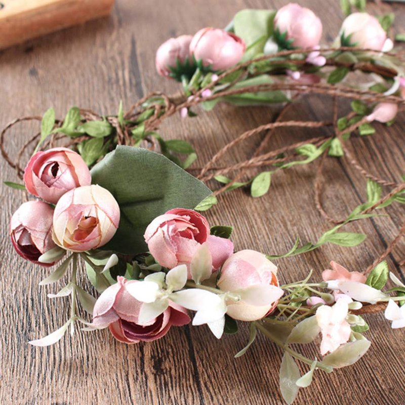 Flower Crown Headband Rose Wreath Garland Hair Bands Floral Wedding Bridal Hair Hoop Women Ladies Leaf Vine Party Decoration Headdress Headwear Christmas Handmade Headpiece Hair Accessories Pink