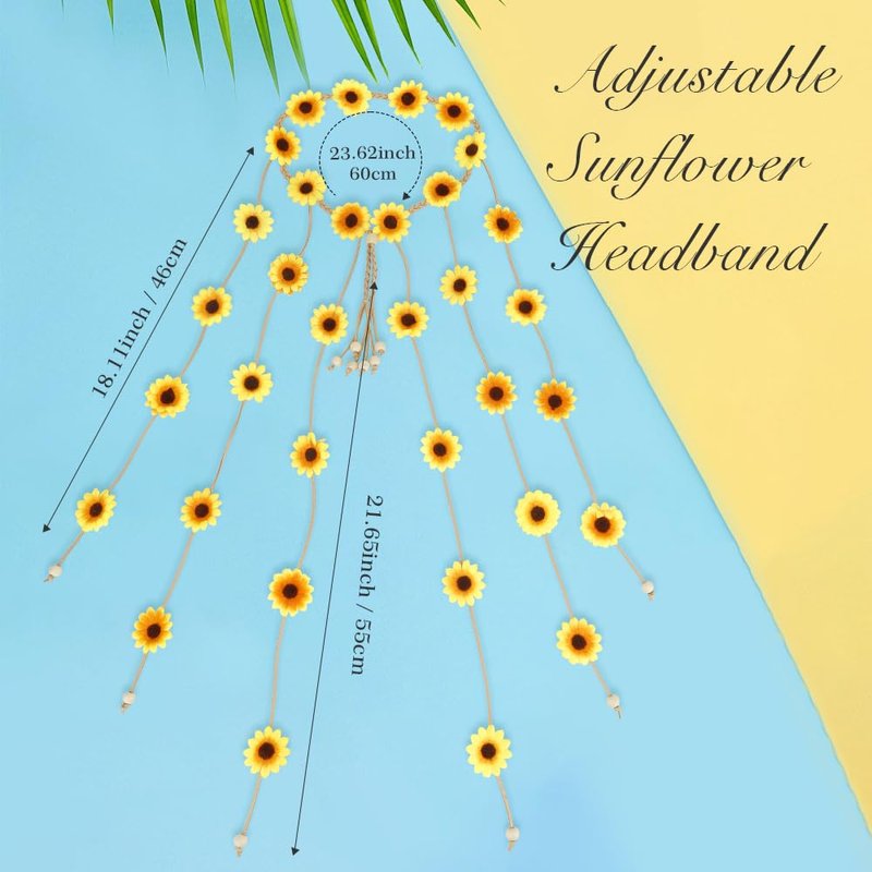 - ADJUSTABLE SUNFLOWER HEADBAND: This flower headband for women is designed with an adjustable beaded strap that secures it to your head for a perfect fit. You can adjust the knot by yourself and the product size is variable, flower headband adult suitable for girls or women of all ages. This sunflower crown is easy to carry, you can wear hippie flower headband anywhere that will make you look more attractive in the crowd. Flower headband hippie is comfortable to wear and will not hurt your hair.