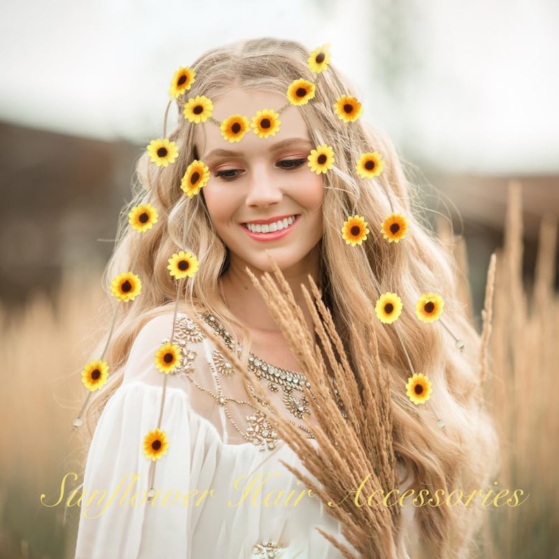 - SUNFLOWER HAIR ACCESSORIES: This is a versatile sunflower hippie headband for the 70s headbands for women dress style. The hippie accessories design is suitable for all kinds of hairstyles and head shape. Hippie costume accessories goes with any outfit in your closet, such as jeans, dresses, skirts, sweaters, cardigans, or any bohemian style outfits.