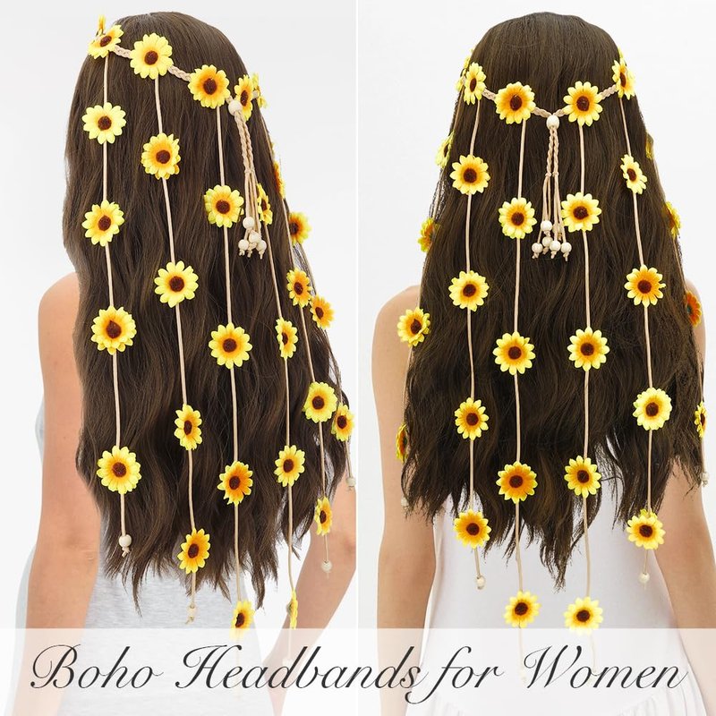 - EXCELLENT IDEE GIFT: Boho headbands for women with sparkling colors and fashionable styles are the hippie gifts for women. Give this sunflower headpiece as a gifts for women, gifts for her, best friend gifts for women, christmas gifts for women, birthday gifts for women, mom birthday gifts. Sunflower gifts for women to your female friend, girlfriend, daughter, lover, mother, or even yourself on Memorial Day, Valentine's Day, Mother's Day, Thanksgiving Day, Christmas, Halloween.