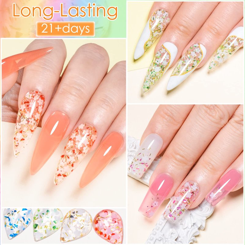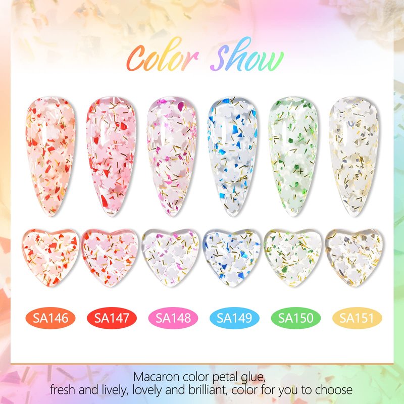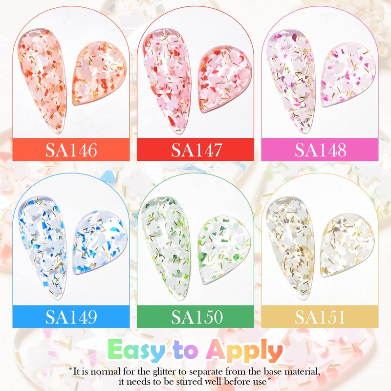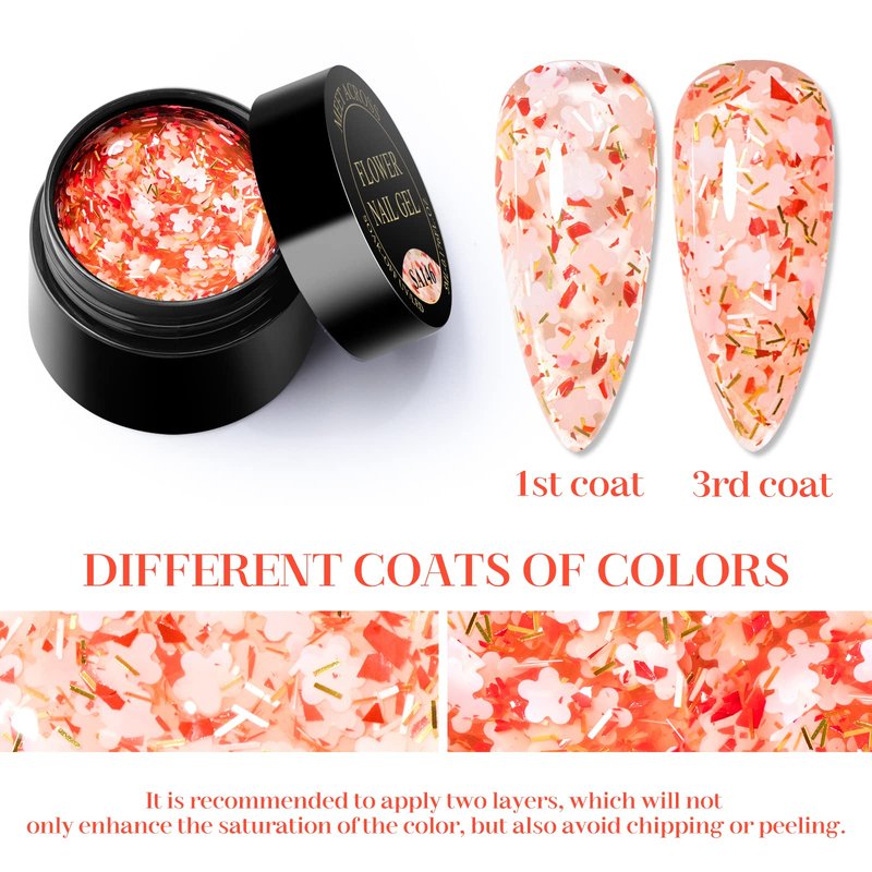 - COLORFUL & SPARKLING: Flower glitter gel nail polish set is more sparkling by mixed with flower and glitters, this effect is suitable for daily work or dates. You can find any shiny colors you want, such as pink, blue, green, etc.