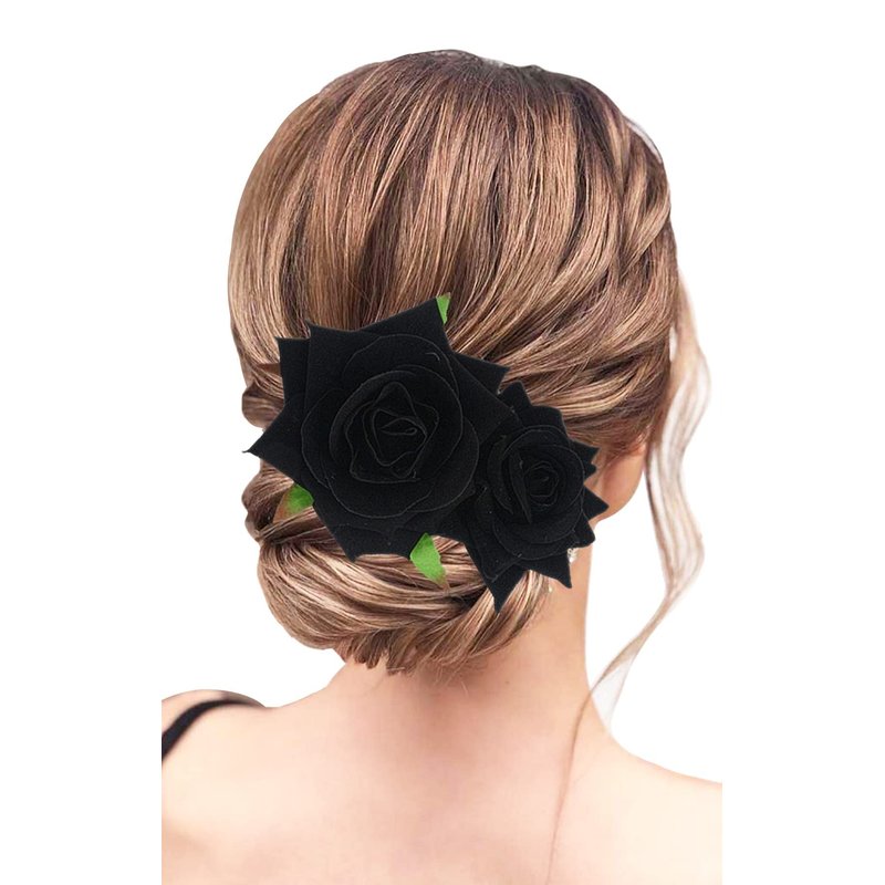 Flower Hair Clip, Rose Flower Bohemia Hairpin Hair Comb Bride Costume Hair Decor for Party Wedding Black