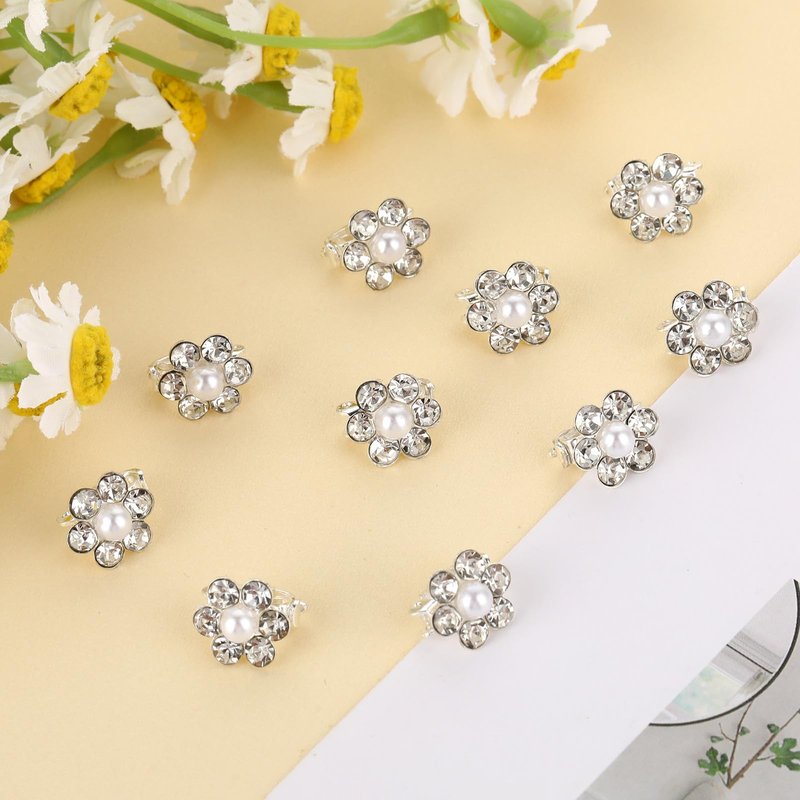 - Flower Shape - The Mini Rhinestone Flower Hair Clip is shaped like a small flower, with 6 rhinestone petals surrounding a pearl. The workmanship is exquisite and enhances your lovely temperament.