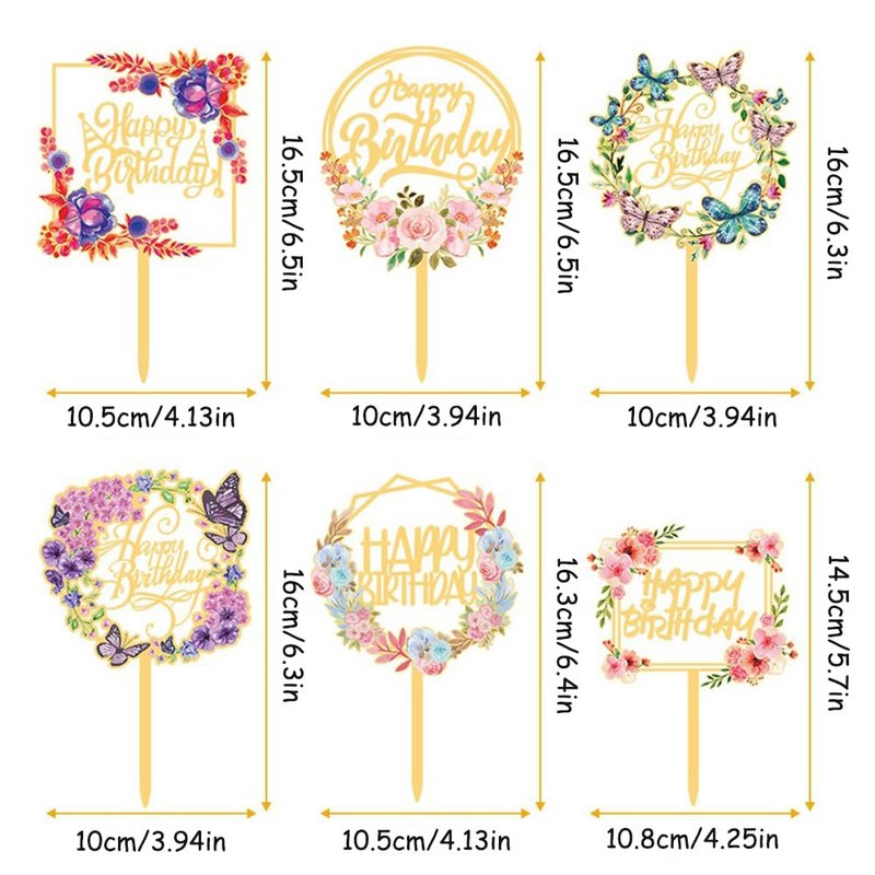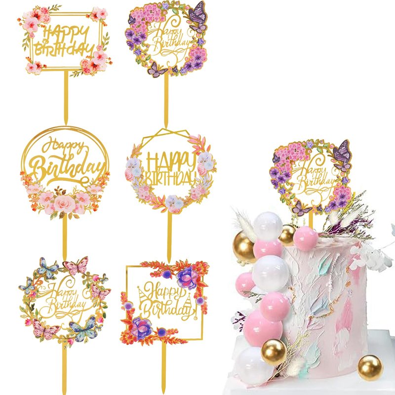 - PACKAGE INCLUDES: 6 pieces of happy birthday cake toppers with different designs, each cake topper is in gold color with very beautiful flowers and butterfly patterns, full of nature and vitality. Decorate your birthday cake with such beautiful cake toppers to make your party more attractive.