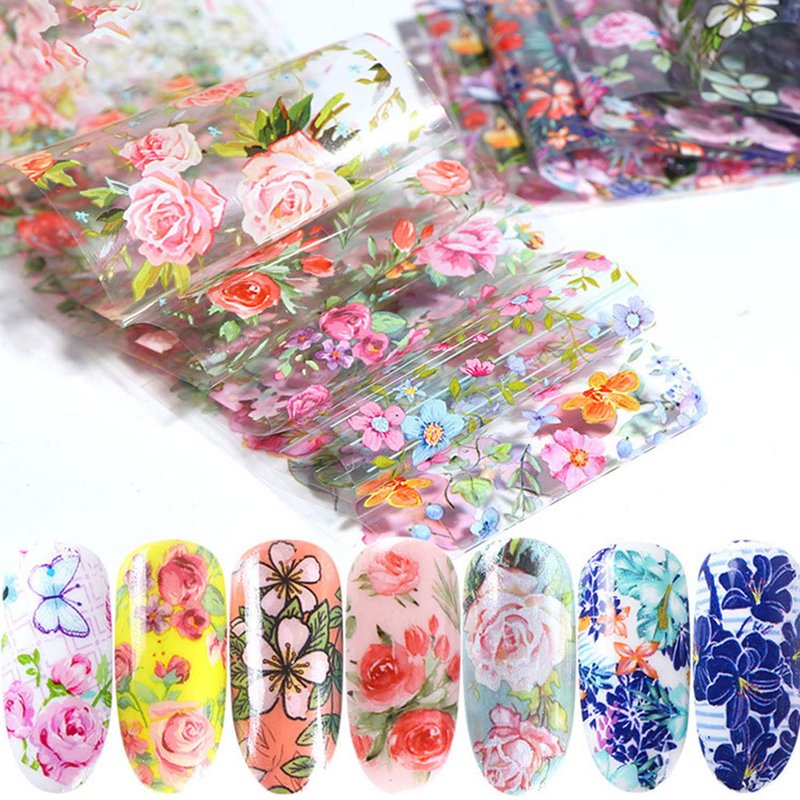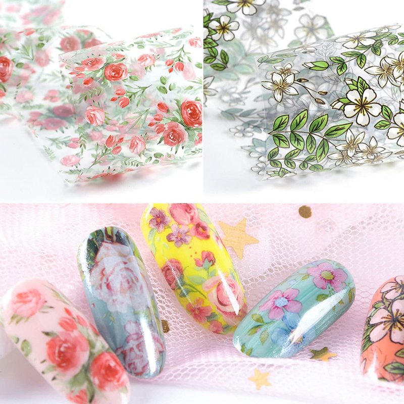 - 🧡Beautiful Flower Nail Art: 10 sheets of flower foil transfer nail stickers featuring , daisies, orchids, lilies, tulips, magnolias, roses, etcand other gorgeous designs to elevate your nail game.