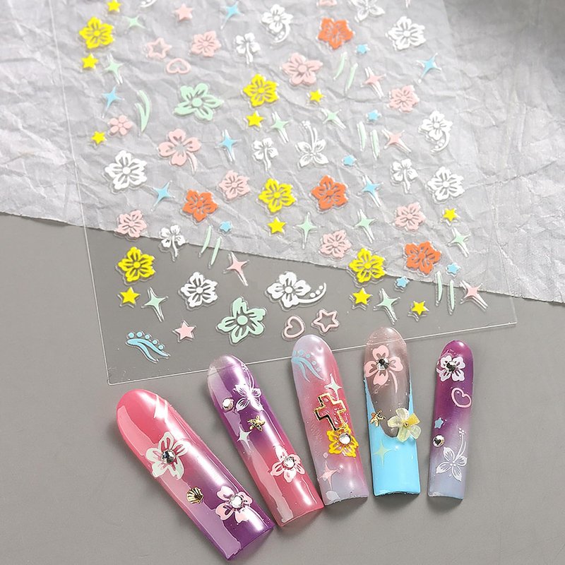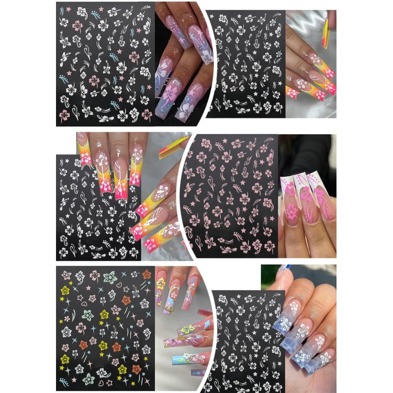 - Easy to Use:These are 3D self adhesive sticker sheets, when you use them for nail art,just peel the design off with tweezers and stick it on your nail surface.Hibiscus Self-adhesive nail decals, you can follow the instructions to decorate your own style nails, home use and nail salon.