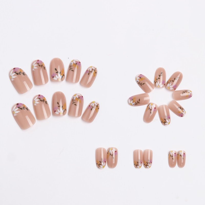 - 【Include】You'll get 24 fake nails, 1 nail file, 1 stick, and 24 glue. Flower fake nails are suitable for all kinds of social situations, perfect for nail salons, DIY home nail art.