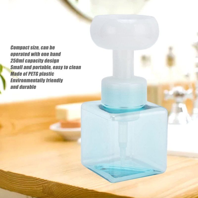 - 250ML FLOWER SHAPE SOAP DISPENSER: The flower shape foaming bottle has a capacity of 250ml, unique flower shape design, small, cute, portable, and does not take up space in the bathroom or bedroom. Perfect for holds shampoo, shower gel, hand soap, pet shampoo, hair mousse, dish washing liquids; Please note that the applicable liquid is the liquid containing soap base ingredients.