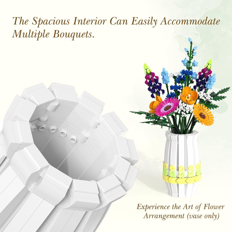 - Vase for Lego Flowers: This versatile vase building set is designed to beautifully accommodate a variety of flower bouquet arrangements, including sunflowers, wildflowers, roses, daffodils, lotus, and cherry blossoms, adding a touch of nature to any space.