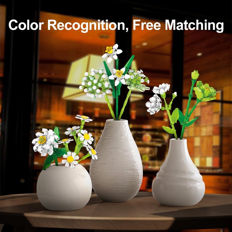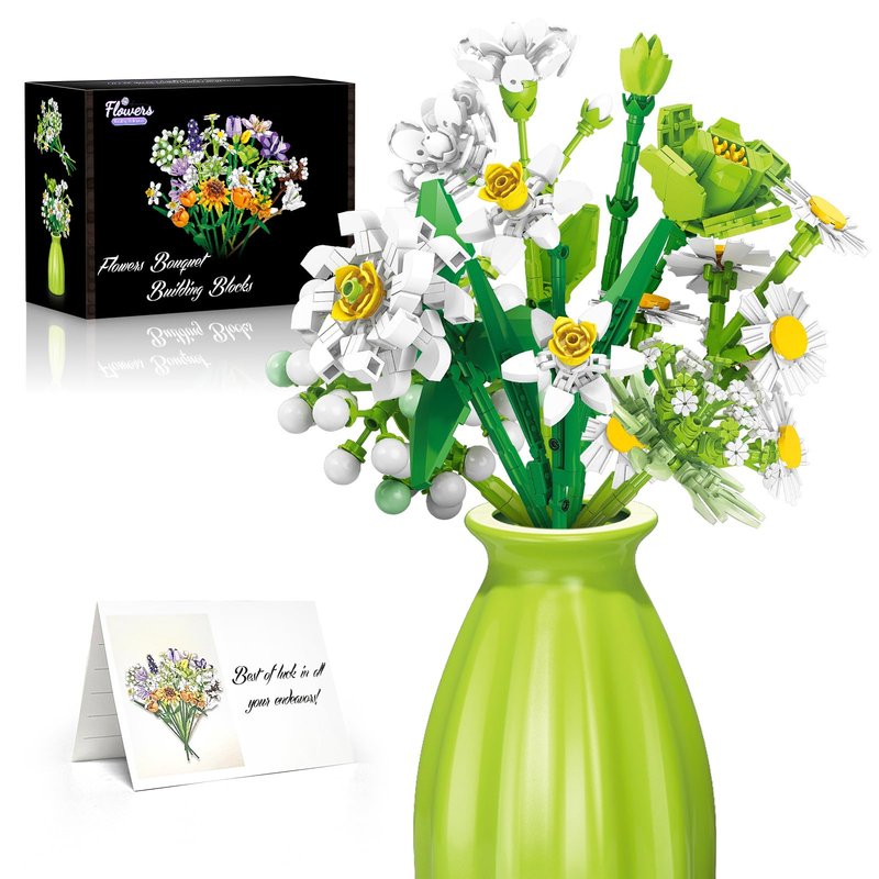 - 【Elegant Turquoise Vase and Postcard】Each wildflower bouquet construction block kit for adults and kids includes an elegant turquoise vase, adding a fresh and vibrant touch to any decor. The flower modular blocks kit exquisite design ensures that your flower arrangements always look stylish and harmonious.