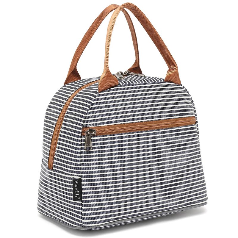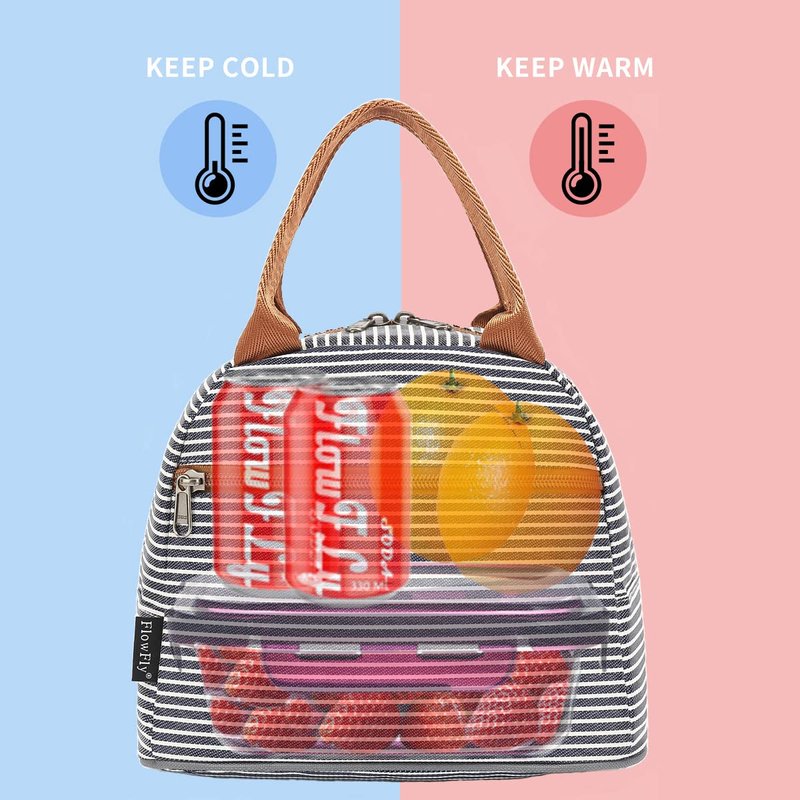 FlowFly Lunch Bag Tote Bag Lunch Organizer Lunch Holder Insulated Lunch Cooler Bag for Women/Men,White&Black Stripe