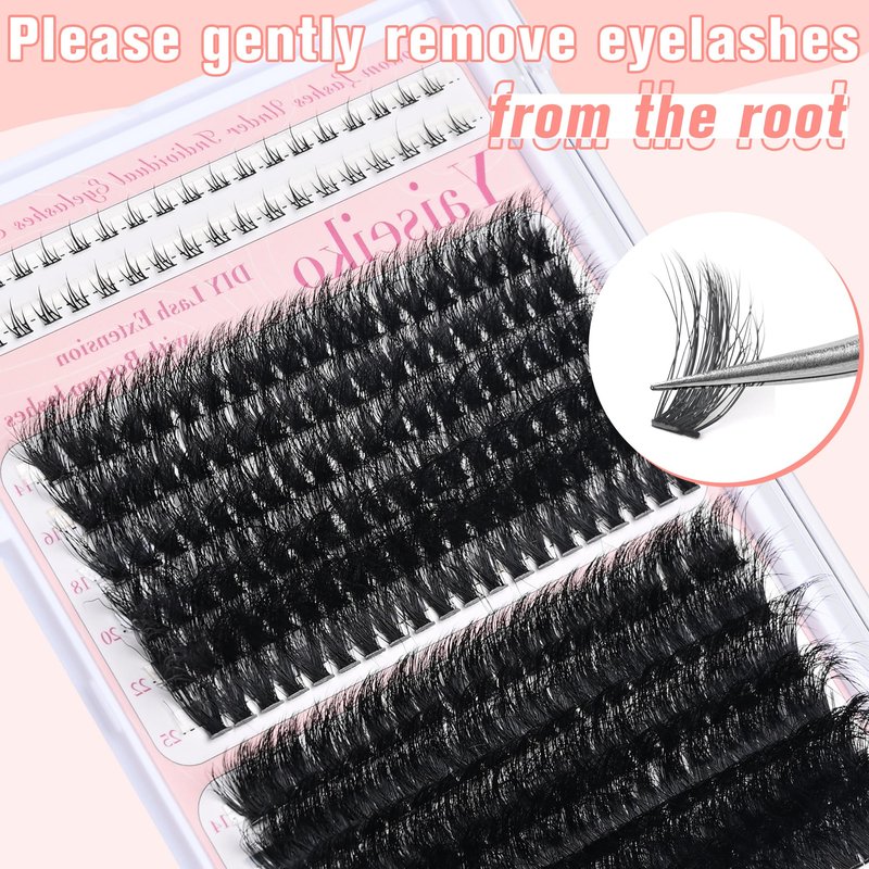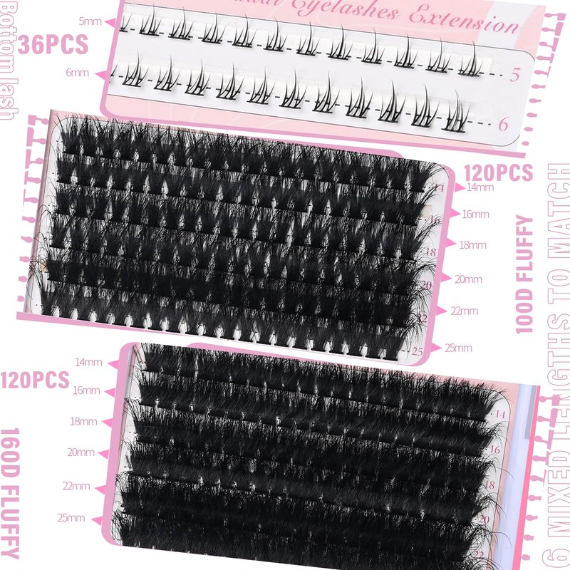 - 【100D+160D Cluster Lashes with Bottom Lashes】The individual lashes pack includes 240pcs lash clusters 14-25mm mixed length and 36pcs bottom lashes 5-6mm, total 276 clusters,get a variety of fluffy and thick eyelash extension look,suitable for creating various lash styles