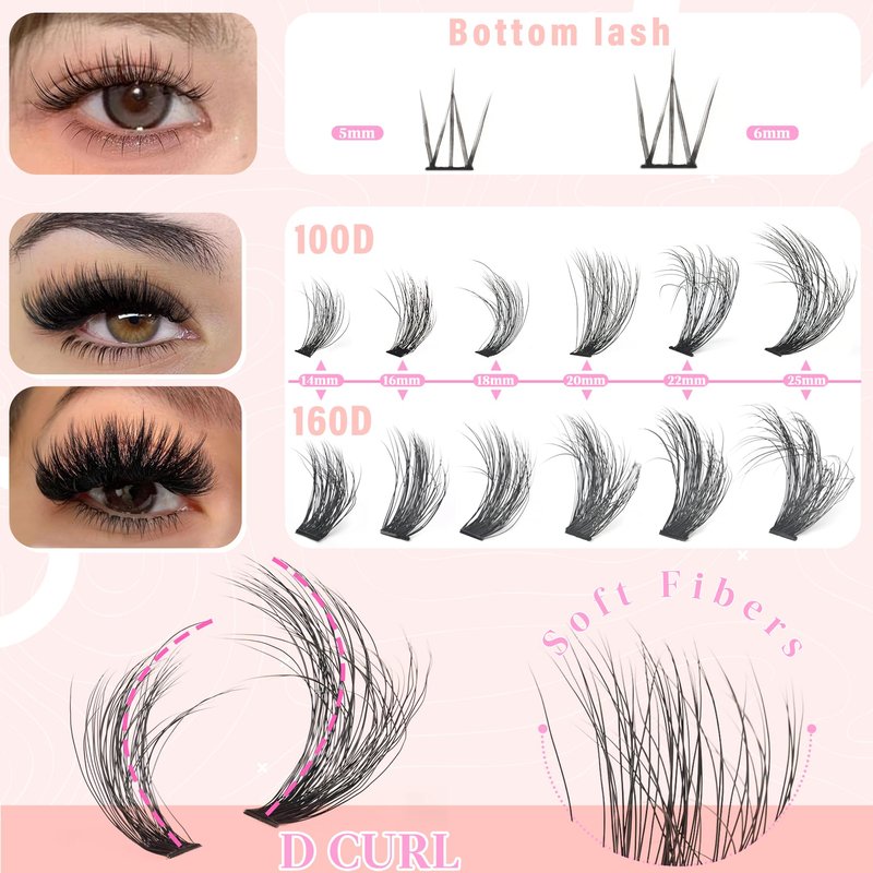 - 【Versatile Length Options D Curl Individual Lashes】14-25mm 6 different lengths for 100D and 160D fluffy lash clusters is suitable for girls with various eye types. You can tailor lash density and dramatic effect to any event.Whether you're seeking a subtle enhancement for everyday wear or a bold the clusters eyelash offer the flexibility to achieve it
