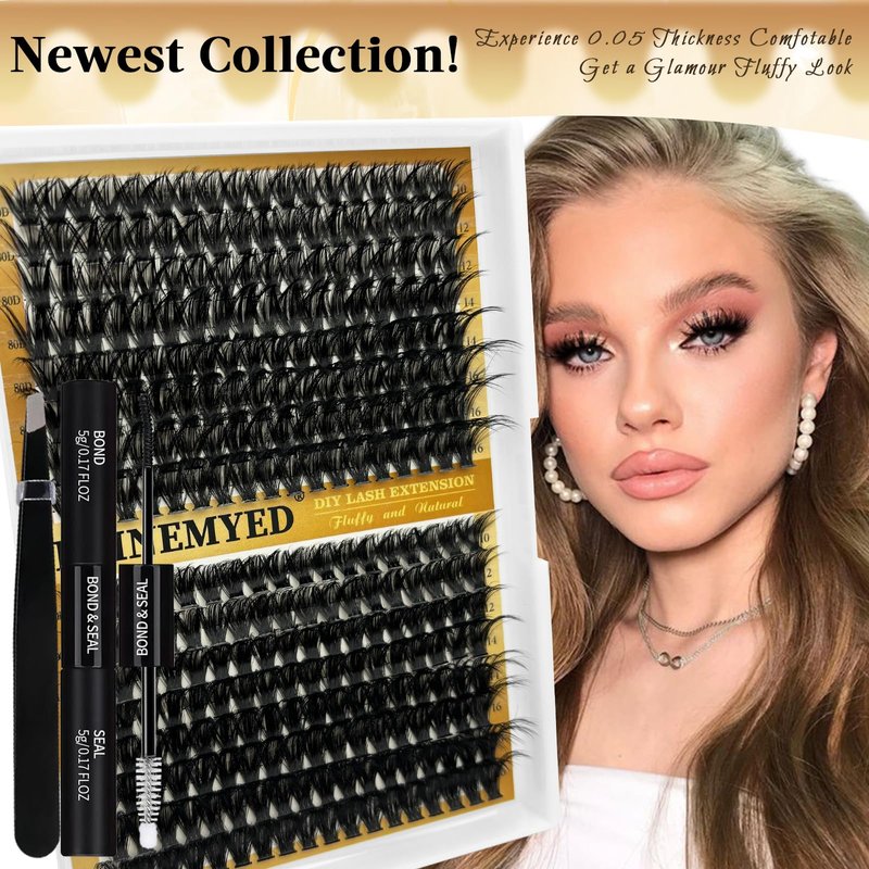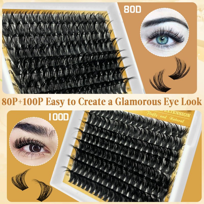 - 【Premium Cluster Lashes Kit】: Extra fluffy cluster lash design! This lash extension kit includes two styles of mixed cluster lashes (80+100D), strong hold and long-lasting lash bond and seal (1pc), and superb lash tweezers (1pc).