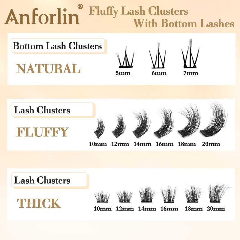 Why Choose Anforlin Clusters Lashes? Anforlin lash clusters combine the convenience of a full lash band with the customization of personalized lashes, allowing you to choose the length and location while don't require a lot of time. Friendly to beginners!