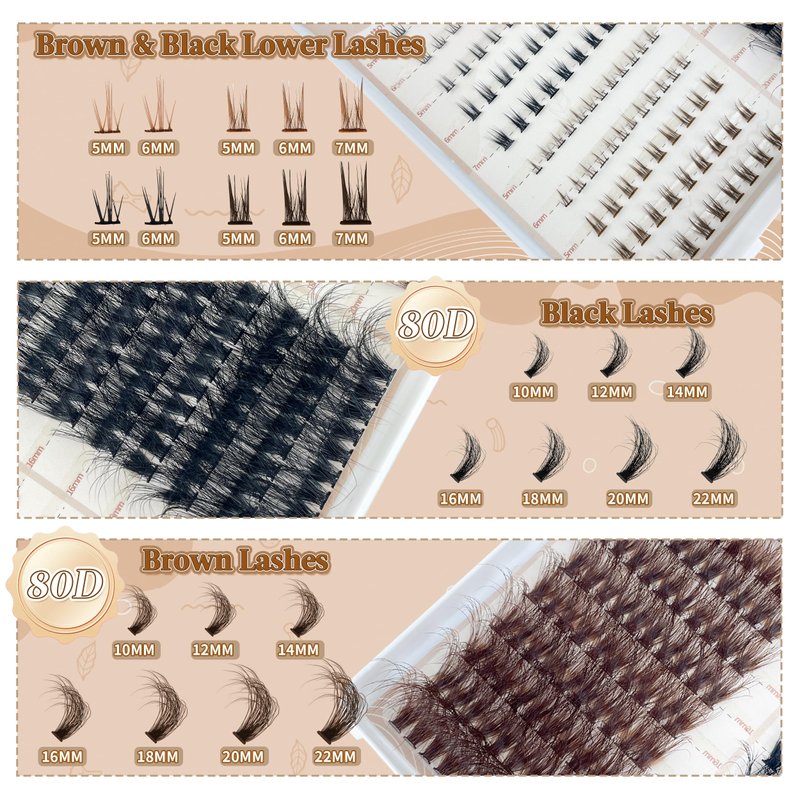 - BLACK & BROWN with BOTTOM LASHES: Just one box eyelashes is enough to have both classic black and warm brown lash clusters, also thoughtfully matched your lower eyelashes with the same color scheme.
