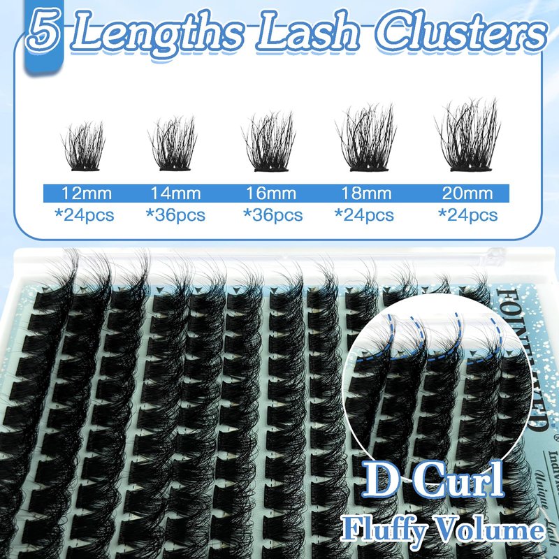 Fluffy Lash Clusters 12-20mm Cluster Eyelash Extensions 144Pcs Volume Individual Lashes Wispy D Curl Eyelashes Clusters DIY Lash Extension for Beginners, by FOINEMYED