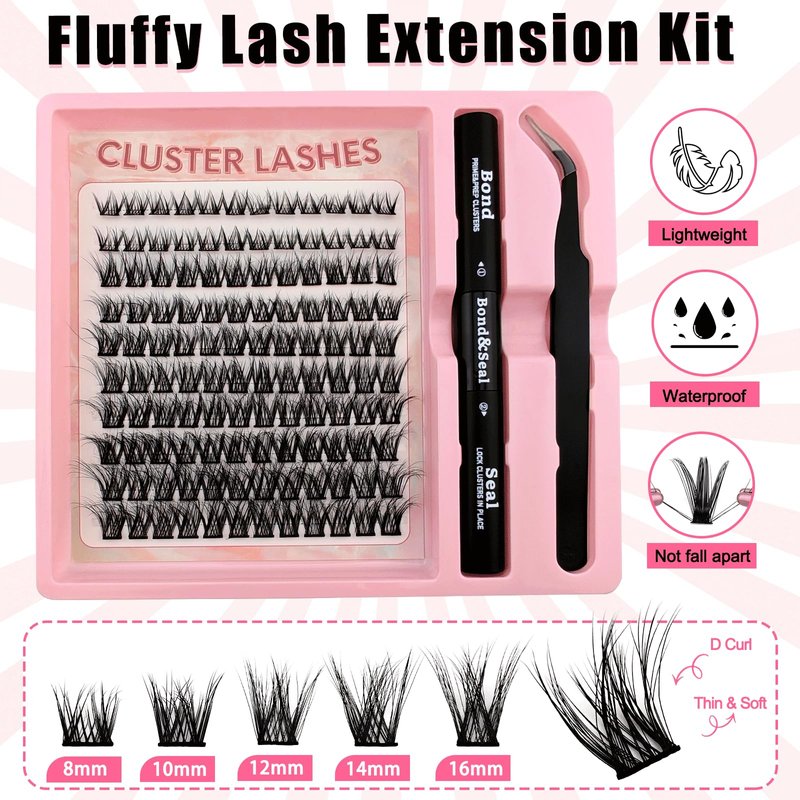 - Fluffy Lash Clusters Kit:These cluster lashes give your eyes a glamorous look and blend seamlessly with your own eyelashes. Considering that everyone's eye shape is unique, you can experiment with various lengths of lashes to DIY different styles.