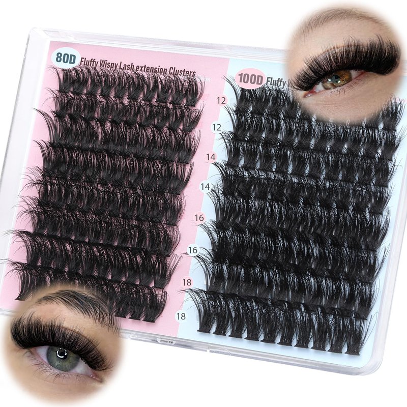 Fluffy Lash Clusters Wispy 80D+100D Eyelash Clusters D Curl Cluster Eyelash Extensions 12-18MM Lashes Clusters DIY Eyelashes Clusters Extension by Pleell
