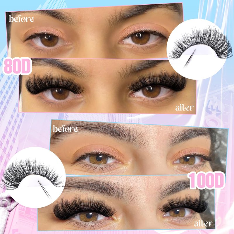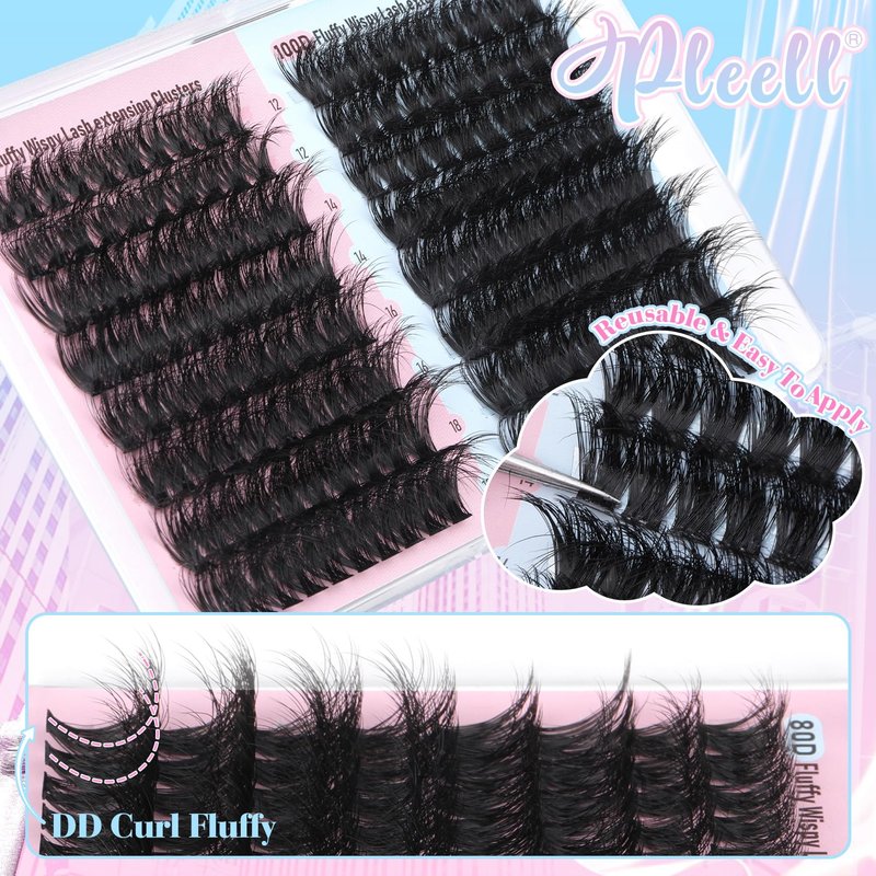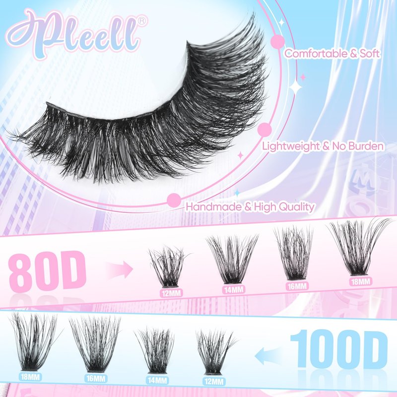 - 80D+100D Lash Clusters: Pleell eyelash clusters features both 80D and 100D styled, ranging in length from 12mm to 18mm, enabling you to customize and DIY various lash extension looks according to your personal preferences.