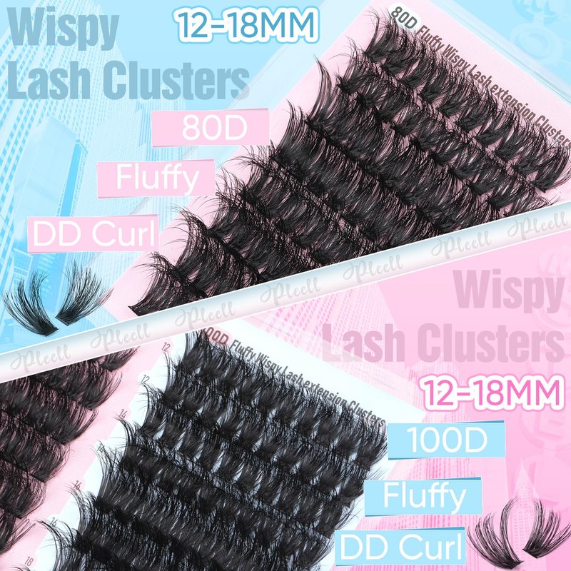 12-18MM Fluffy Lash Clusters Wispy 80D+100D Eyelash Clusters D Curl Cluster Eyelash Extensions by Pleell