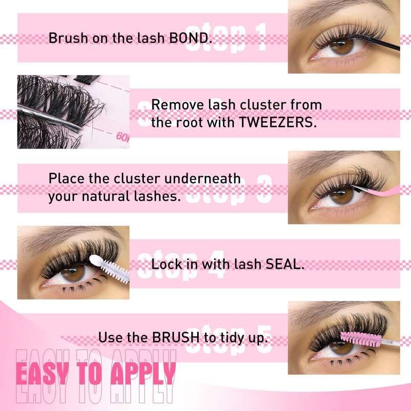 - 【Effortless Glamour Anytime, Anywhere】- Say goodbye to the salon for those wispy lash clusters. Our easy-to-apply individual eyelashes clusters let you start your lash game wherever you are. Create a range of looks that command attention, from elegance to bold drama, all in the comfort of your own space and time.